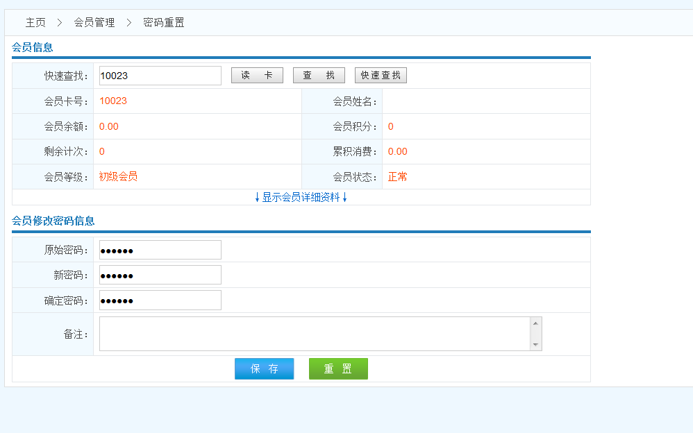 會員信息 可以通過刷卡或者錄入卡號或者通過快速查找