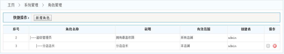 2.角色列表:在角色列表中的最后一欄 可以對角色進行進行編輯和刪除