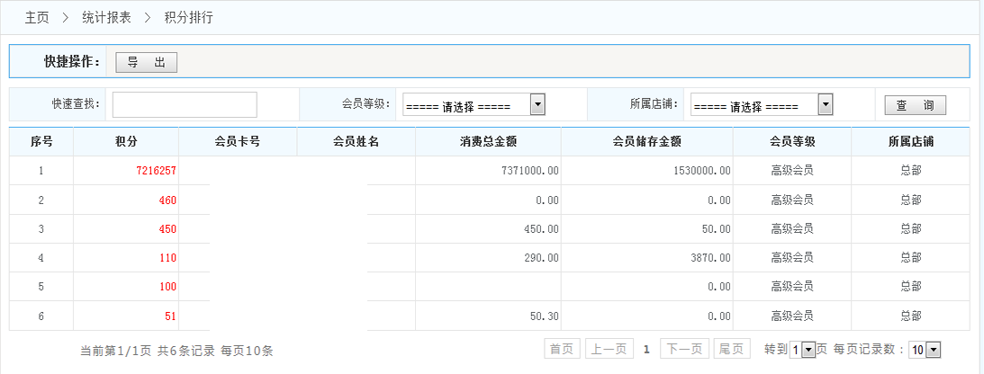 -> 五通一卡通云會員管理系統(tǒng)積分排行統(tǒng)計