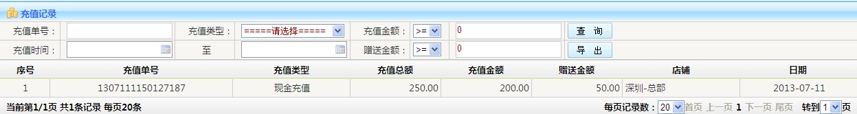 -> 五通一卡通云會員管理系統(tǒng)充值記錄